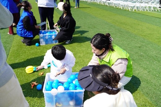(银河集团(galaxy)党员志愿者与星孩们共同参与游艺活动)